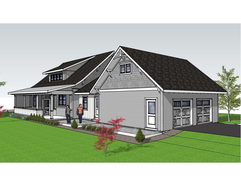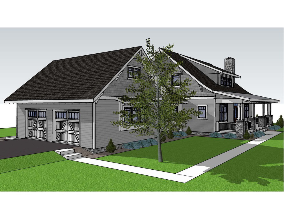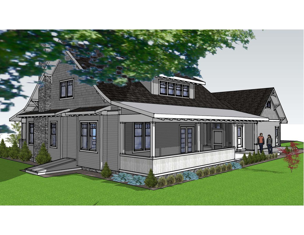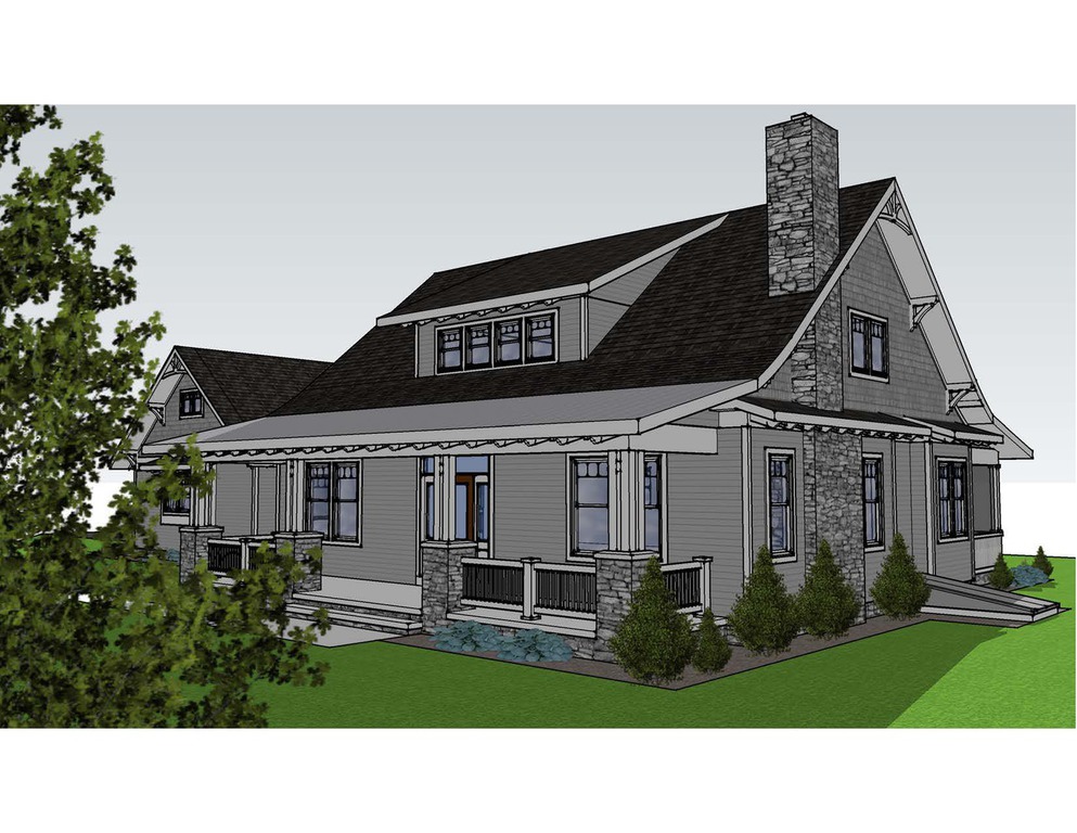 The second floor bedroom addition was so designed to merge together and give the appearance as one congruent house. Restoration design features included a full-length porch with decorative details; multi-textured exterior surfaces; siding applied in varying directions; horizontal and vertical trims/bands; decorative embellished trusses at gable ends of house and dormers; decorative brace supports at large roof overhangs; and new standing seam roof system.